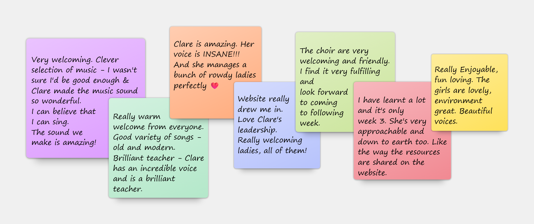 Then after about 4 weeks, if you wish to continue, Clare will arrange an informal private assessment with you. This is to ensure that we are the right choir for you.